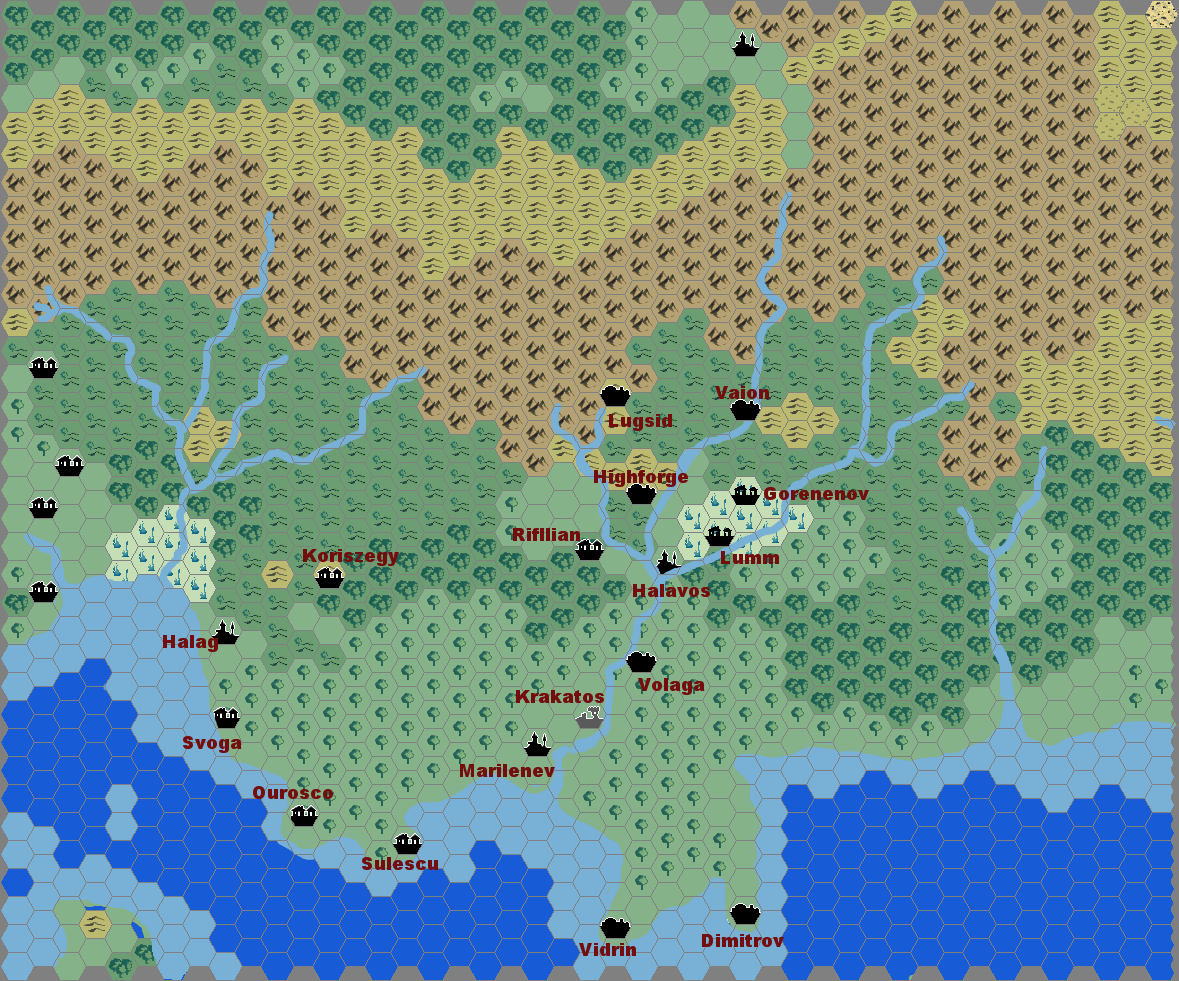Agathokles’ Traladara 0-450 AC, 8 miles per hex