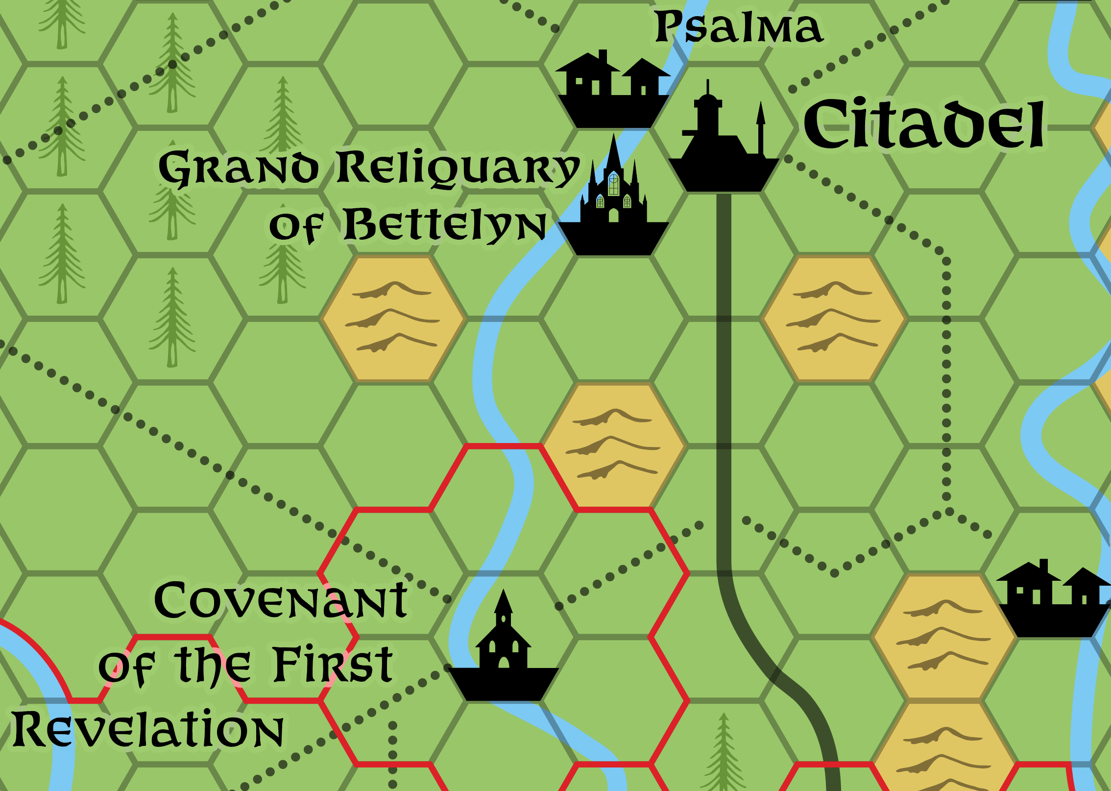 The Holy Realm covers an area close to 186,000 square miles […]. Its capital, Citadel, sits in the Northeast and is home to 325,000 people. Overall, more than 2.1 million Bettellyners live in a land of lush farmland, light forests, and gentle hills. Wide rivers meander eastward across the country, toward the Sea of Esterhold.