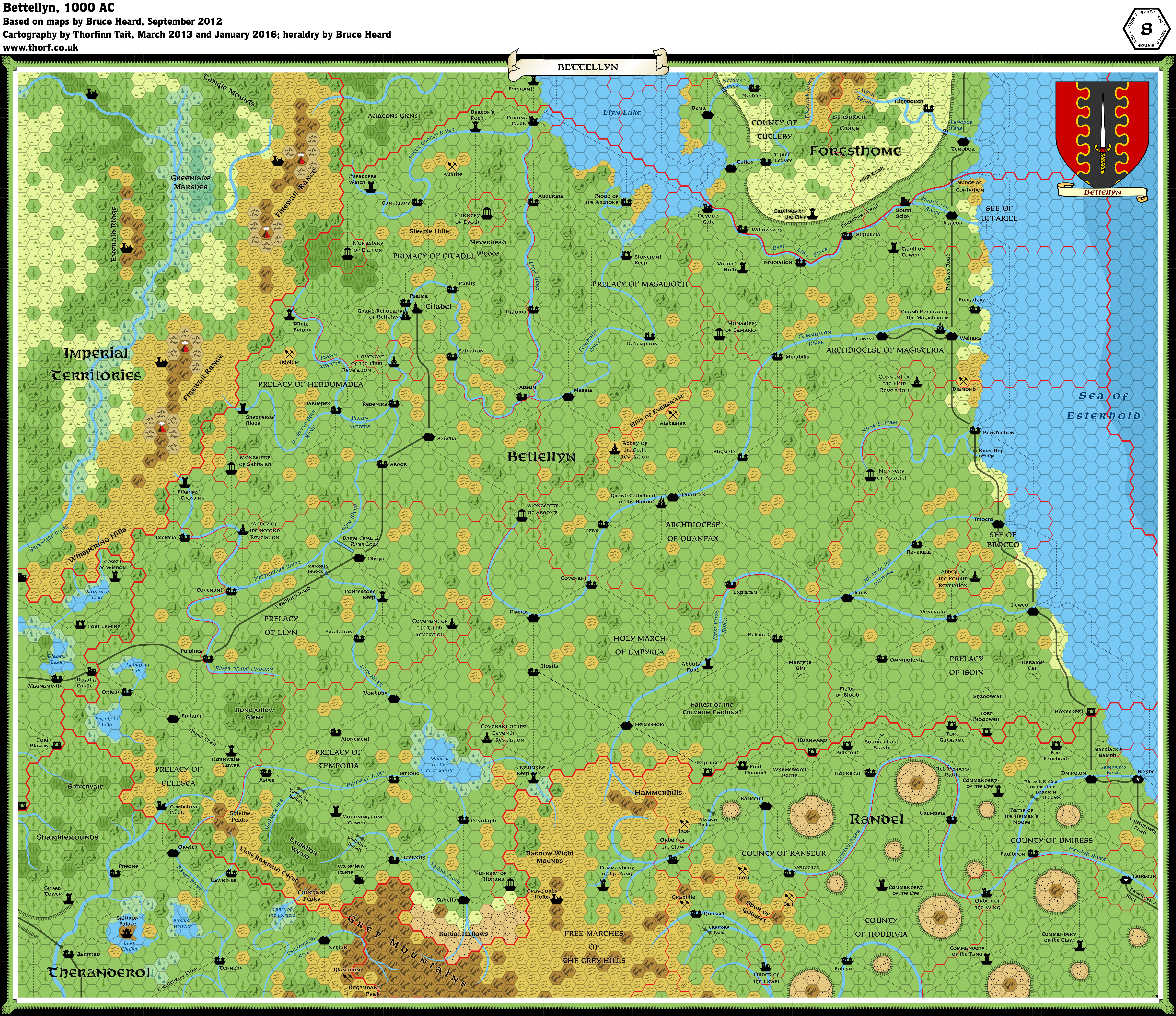 - Bettellyn, 8 mile per hex map by Bruce Heard (2012)