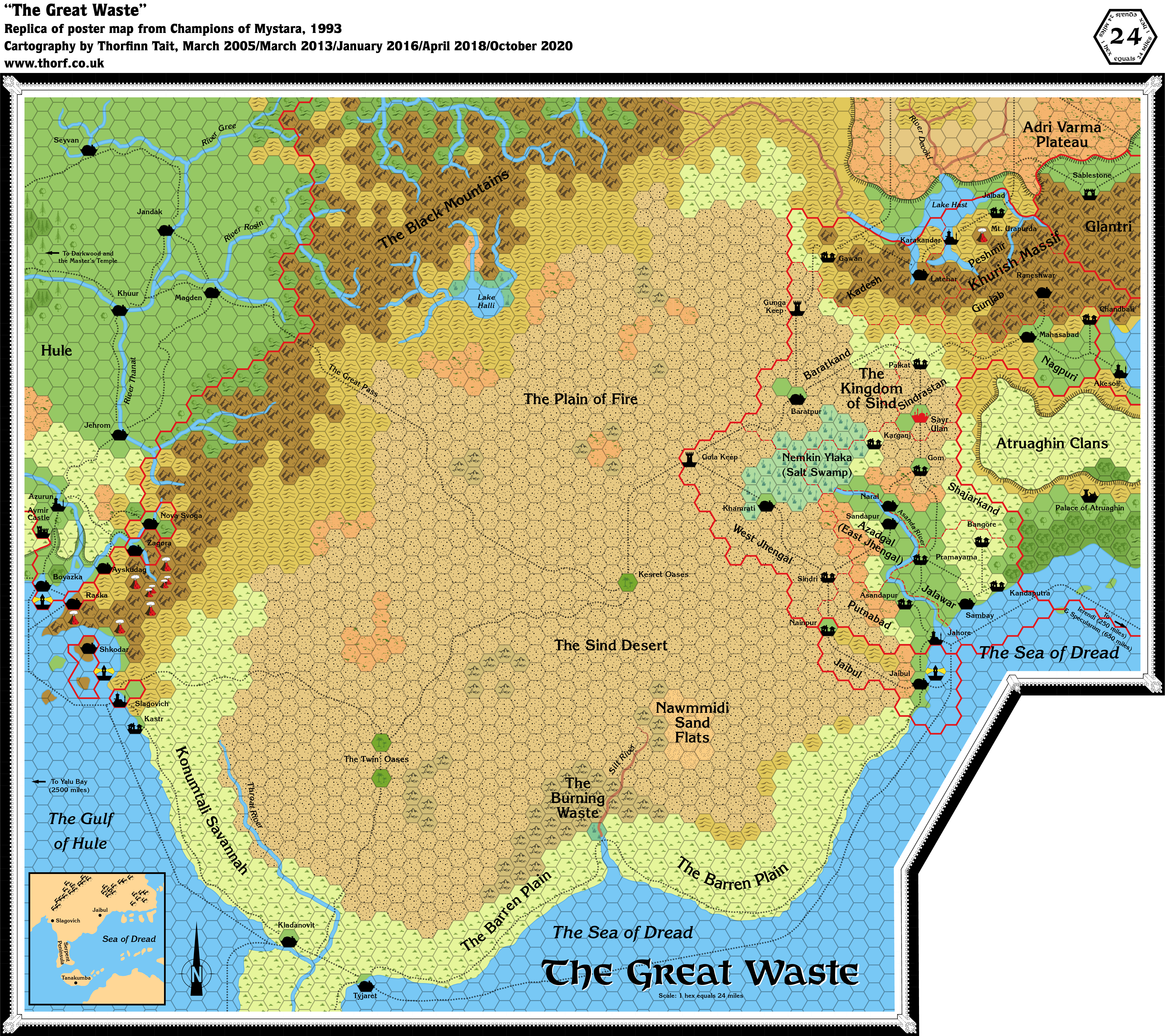 Good catch — but yes, this is a mistake with the original map. The Neck towns of Kladanovic and Tyjaret appeared on both the Great Waste and the Serpent Peninsula maps in Champion of Mystara, but the Great Waste map had Kladanovit while the Serpent Peninsula map had Kladanovic.