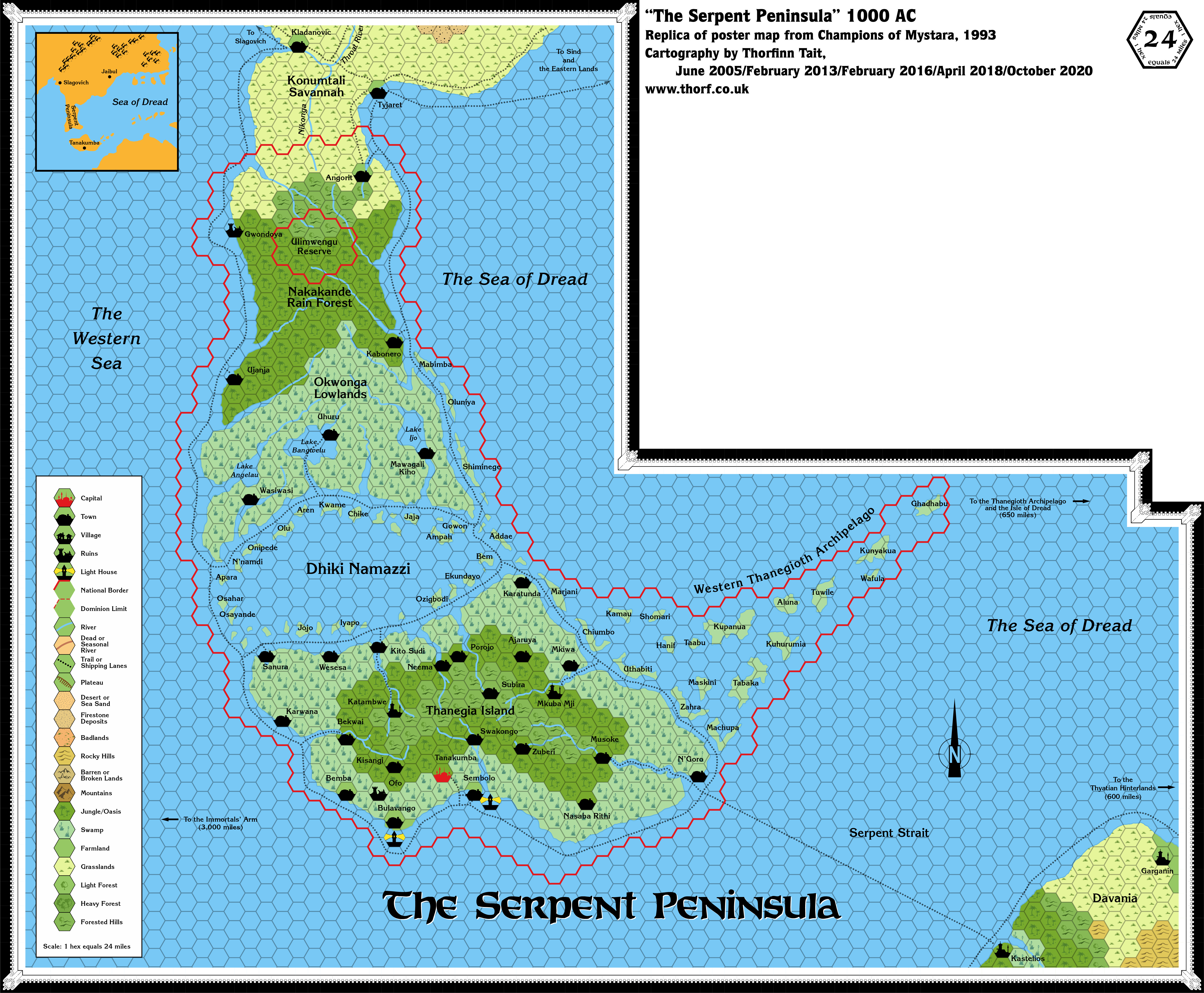 Champions of Mystara Serpent Peninsula, 24 miles per hex