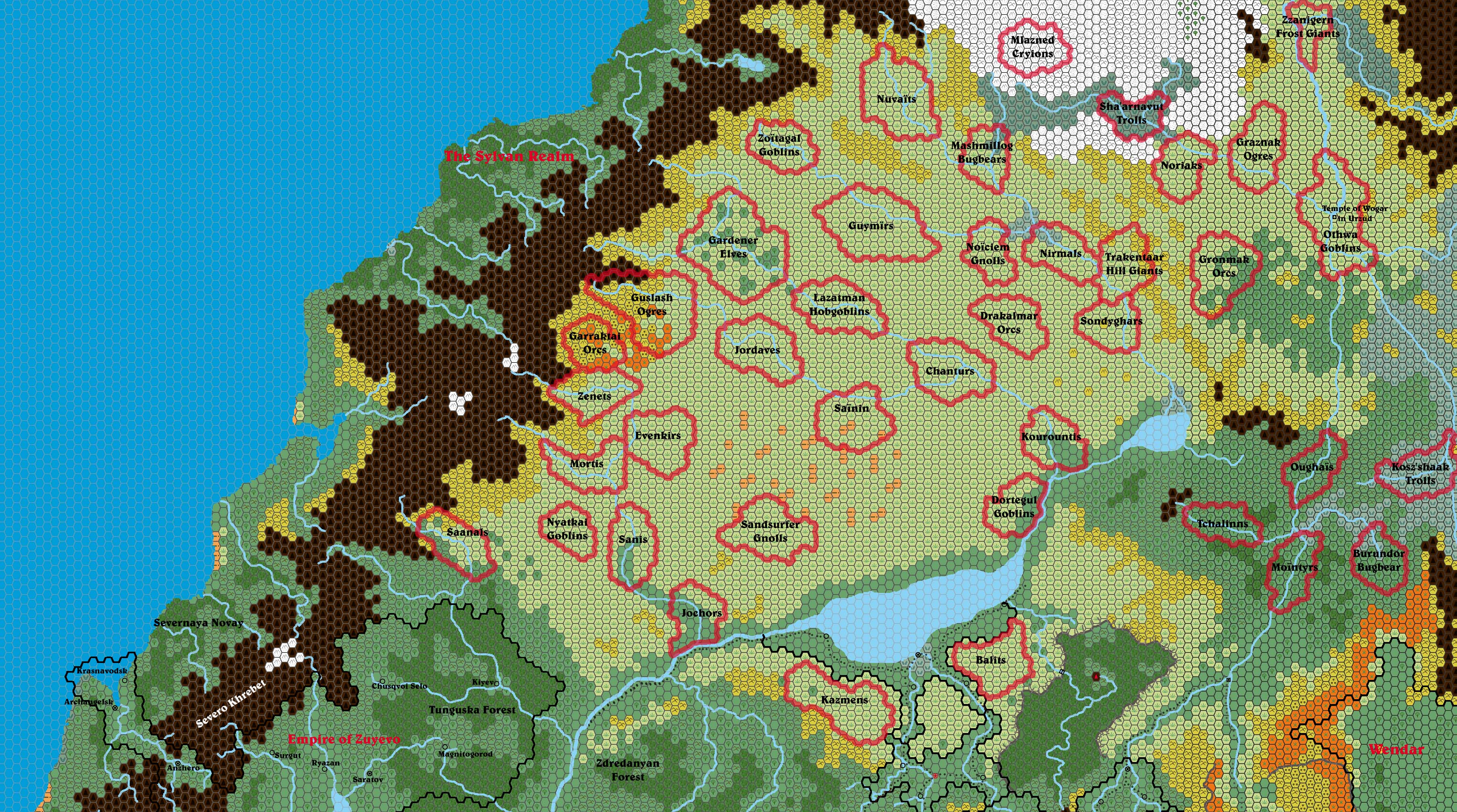 The following lists are from the Let’s Map Mystara project. Additions are new features, introduced in this map. Revisions are changes to previously-introduced features. Hex Art & Fonts track design elements. Finally, Textual Additions are potential features found in the related text. In most cases, the Atlas adopts these textual additions into updated and chronological maps.