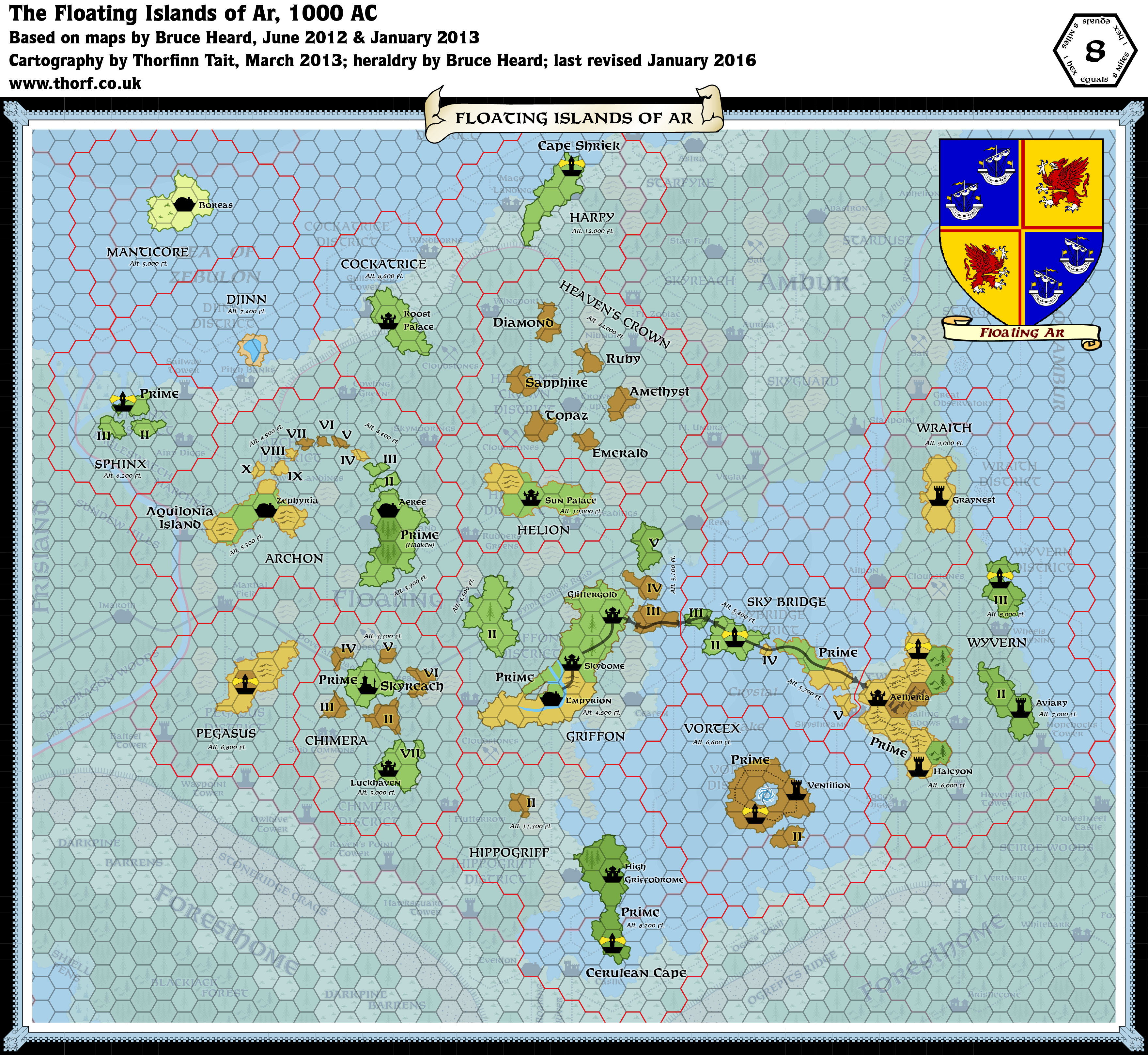 - Floating Ar, 8 mile per hex map by Bruce Heard