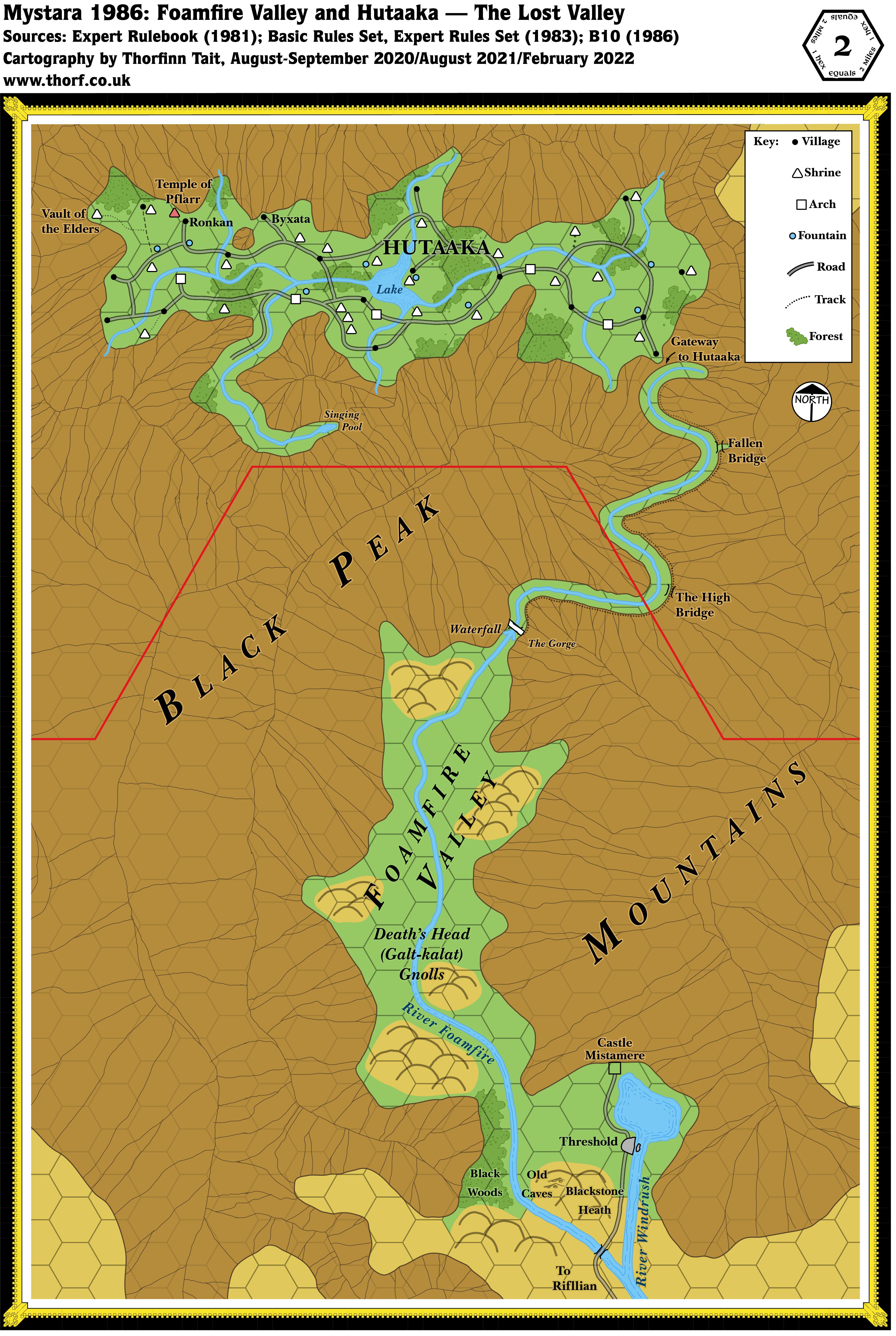 Foamfire Valley and Hutaaka — the Lost Valley, 2 miles per hex (1986)