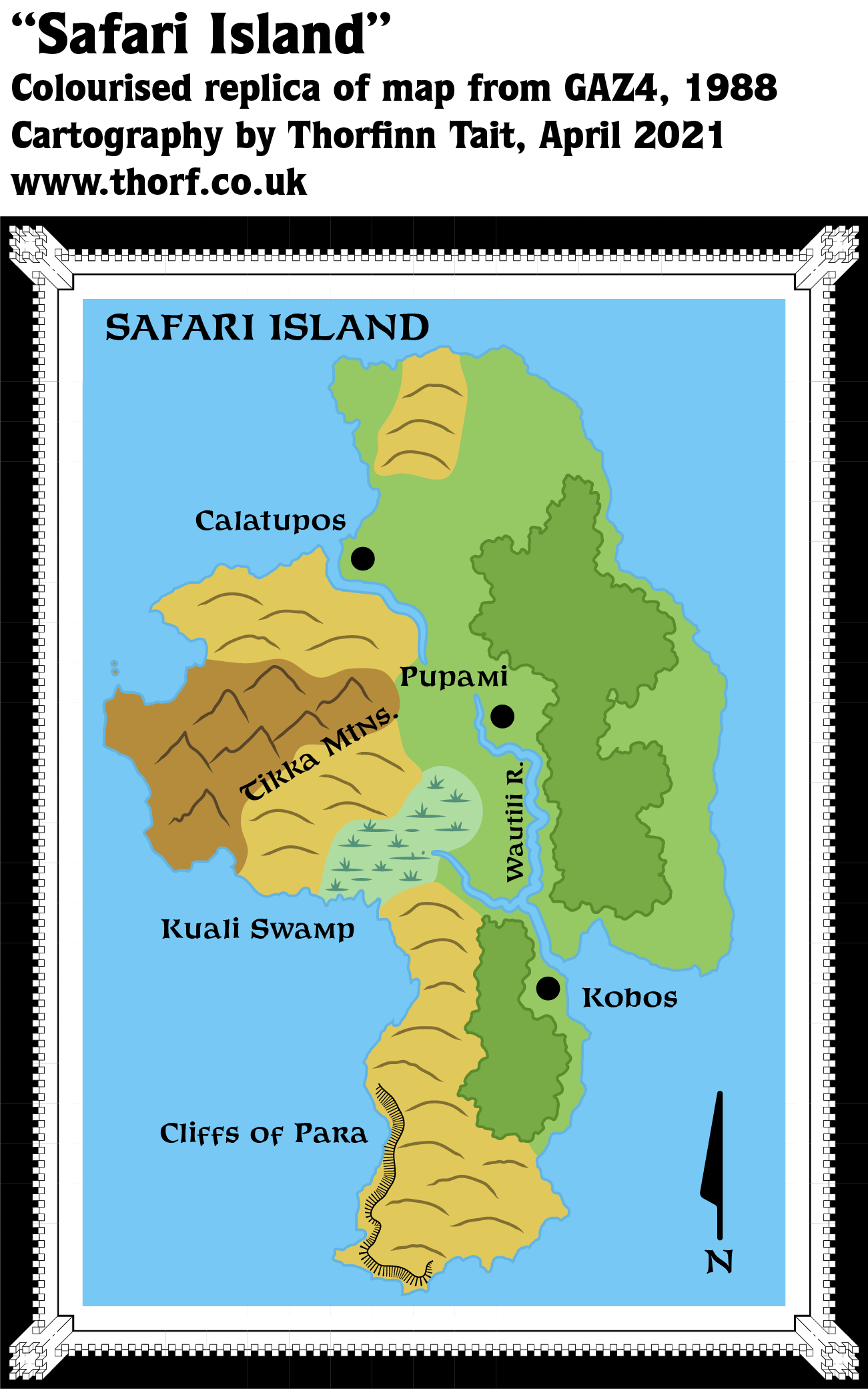 - Terrain — “Ninety percent of Safari Island’s interior has been set aside as a government-supervised wilderness park.” (GAZ4 page 37c)