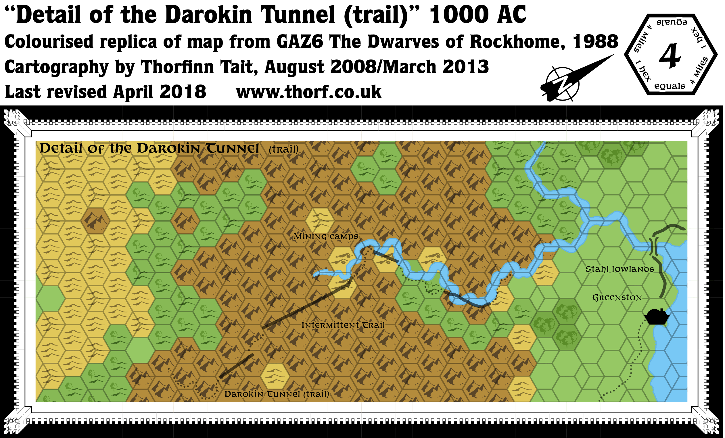 Colourised replica of GAZ6’s Darokin Tunnel map, 4 miles per hex
