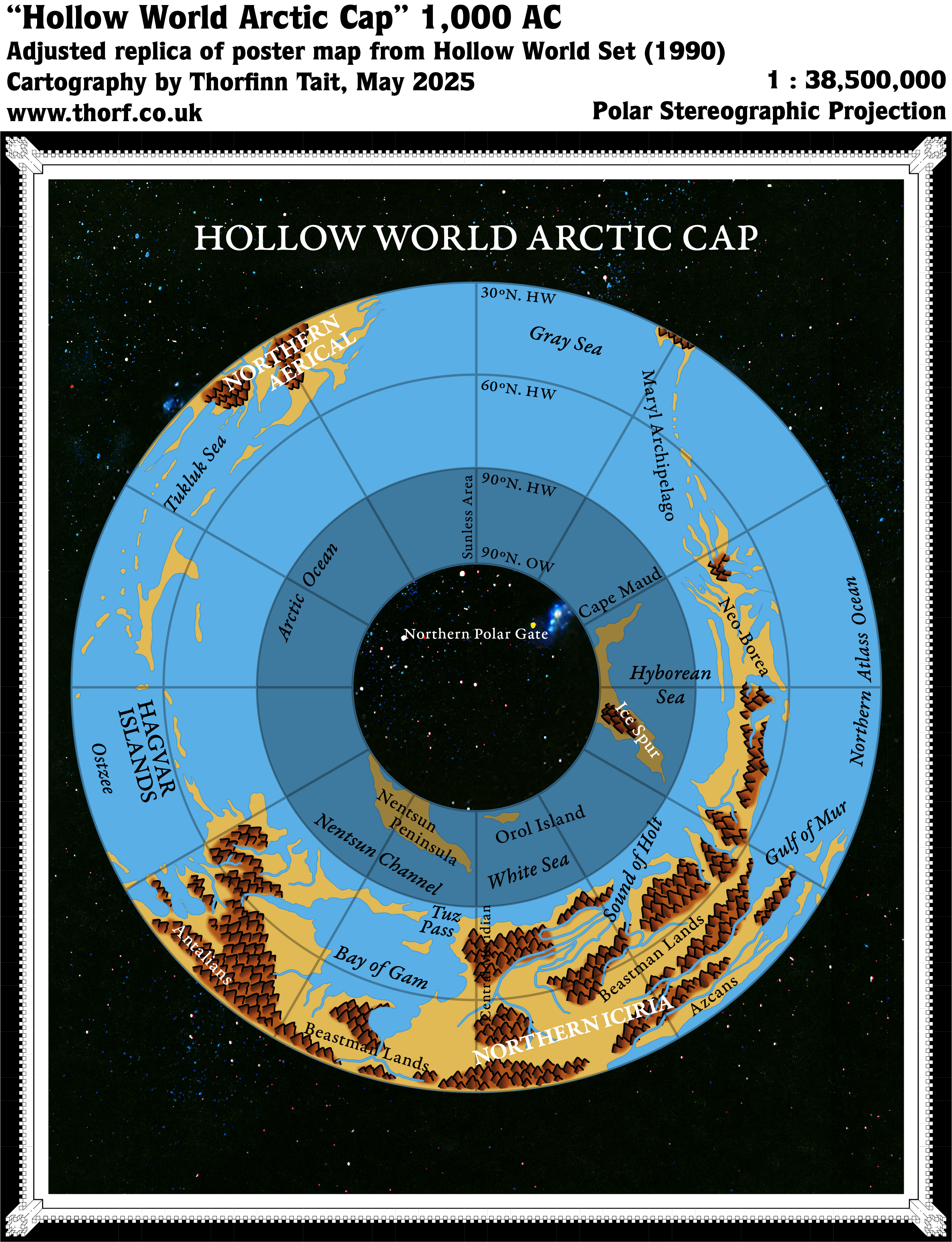 The pair of Hollow World Set Outer World Arctic Cap, this map showed the northern polar gate from inside the Hollow World. (See the Outer World map for an overview of this set of maps.)