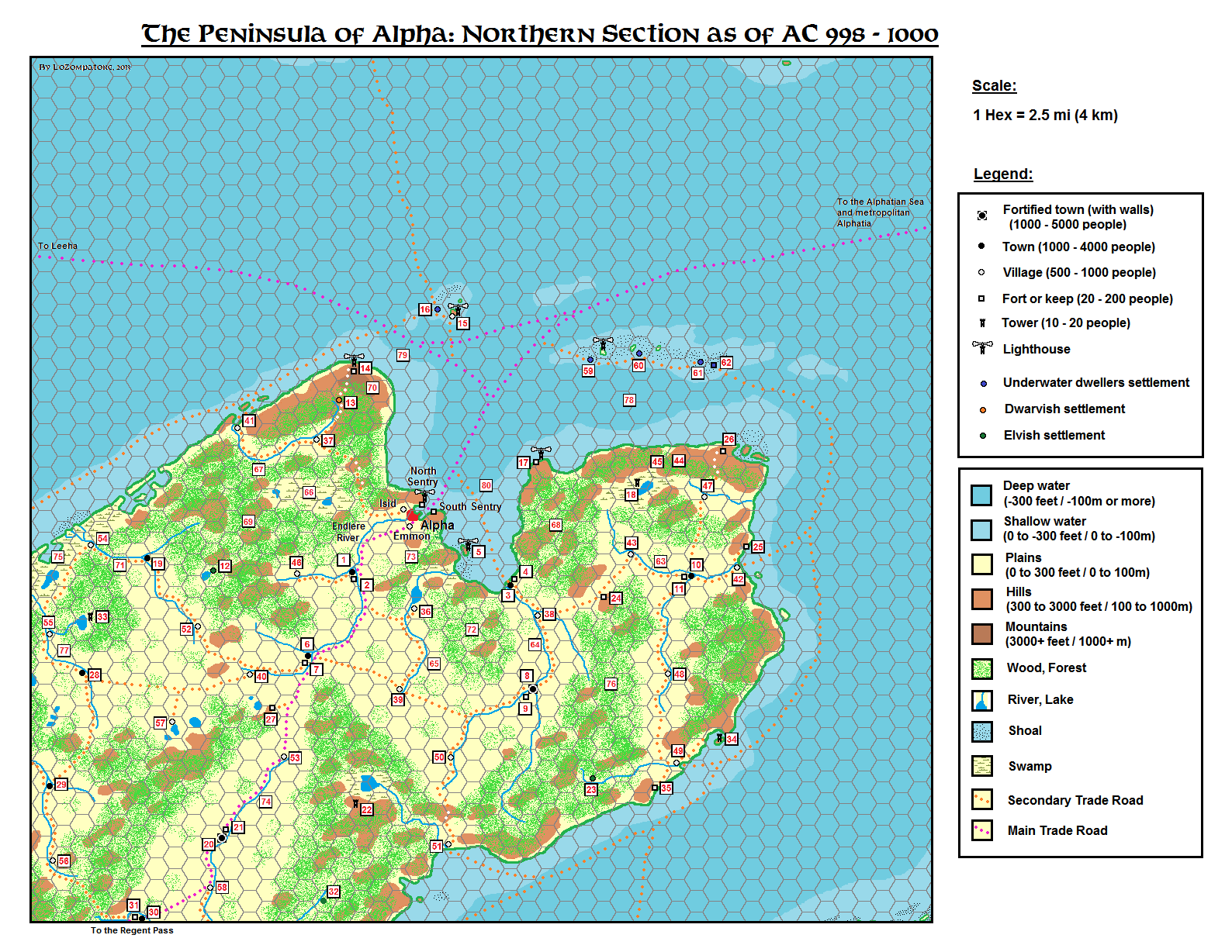 - The Peninsula of Alpha: Northern Section as of AC 998 – 1000 by Michele Carpita at the Vaults of Pandius (October 2013)