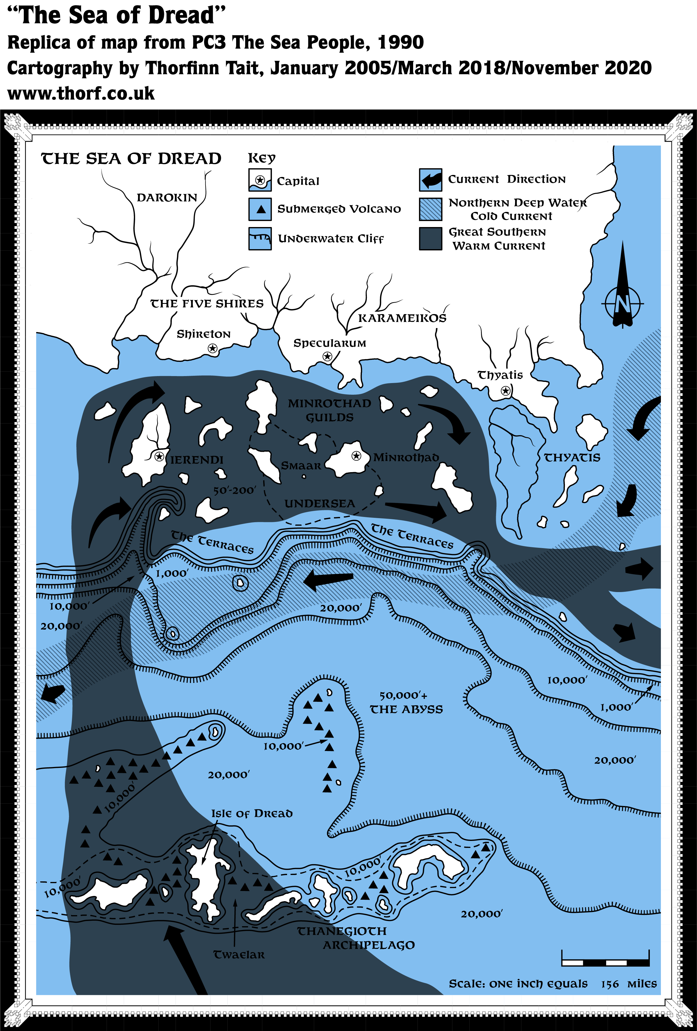Aside from the poster sized hex map, PC3 also provided a smaller scale overview map of the Known World’s sea floor. This map’s most innovative feature was its depiction of sea currents — a first for Mystara.