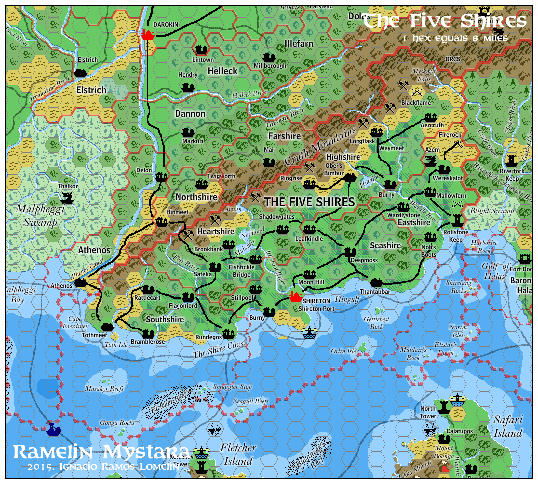 Ramelin’s Five Shires, 8 miles per hex