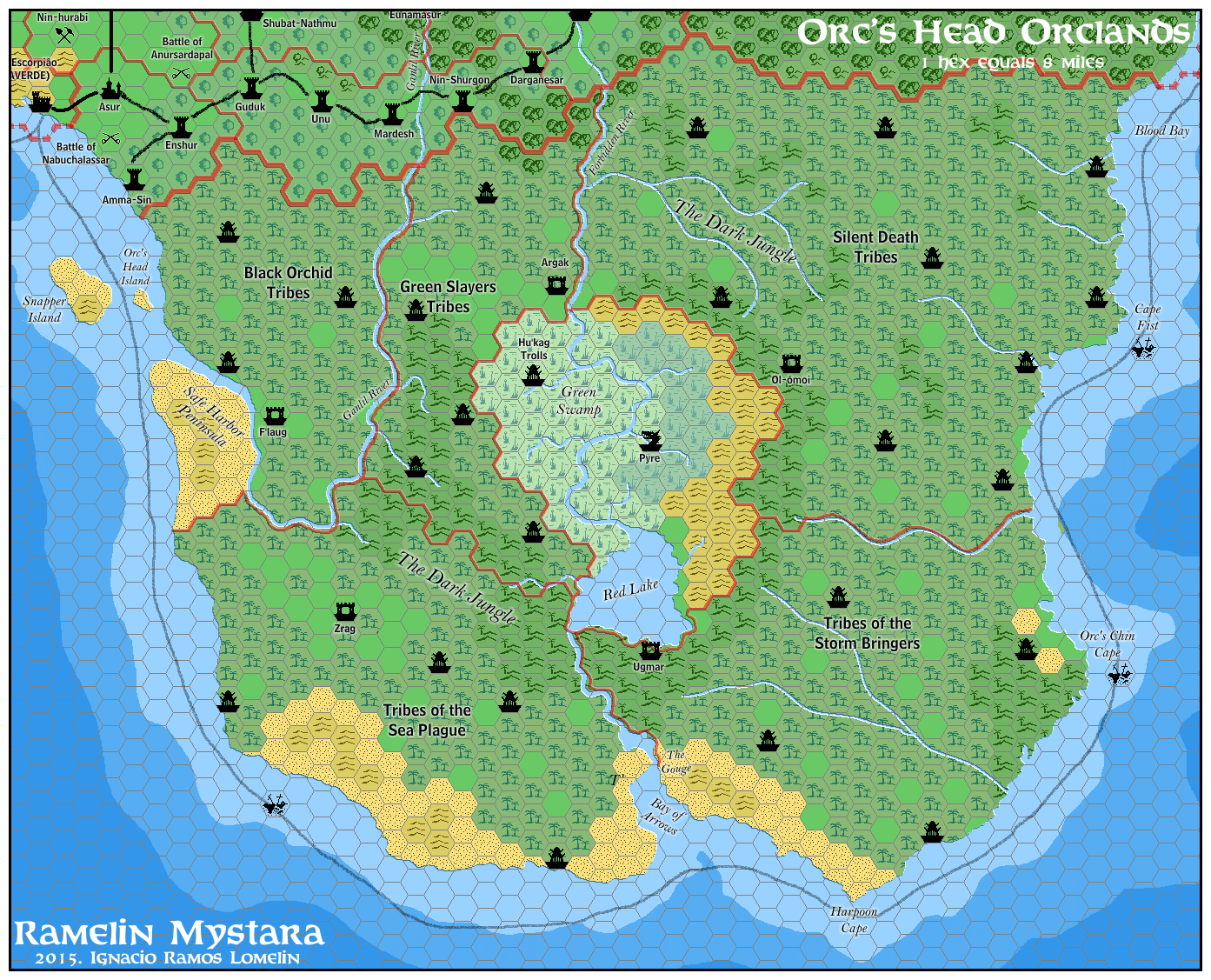 Ramelin’s Orc’s Head Orclands, 8 miles per hex