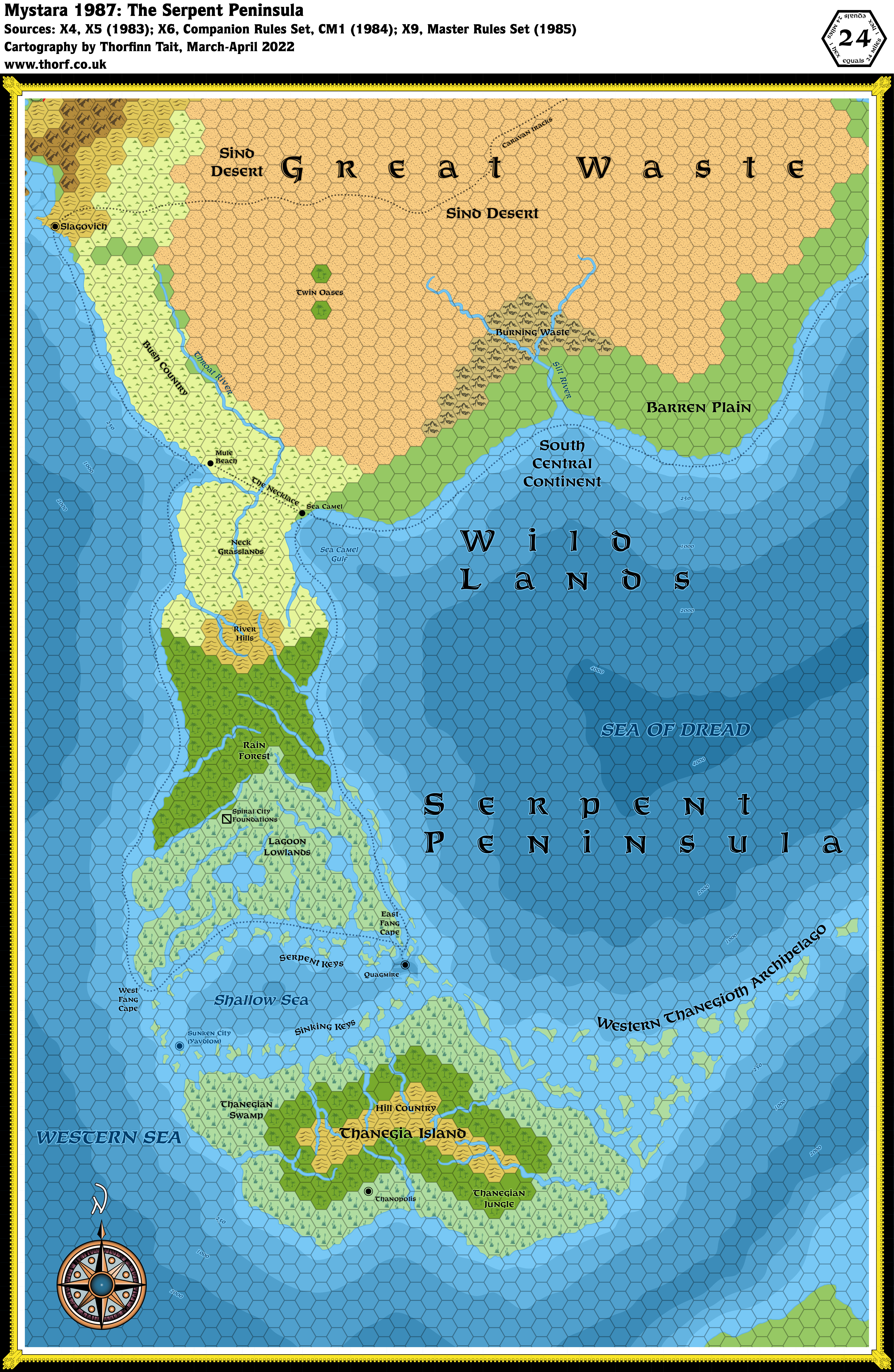 This map is part of the Mystara 1987 series of chronological maps. It is an updated map, incorporating all available sources and made internally consistent with other maps in its series. But it only uses sources published in or before 1987.