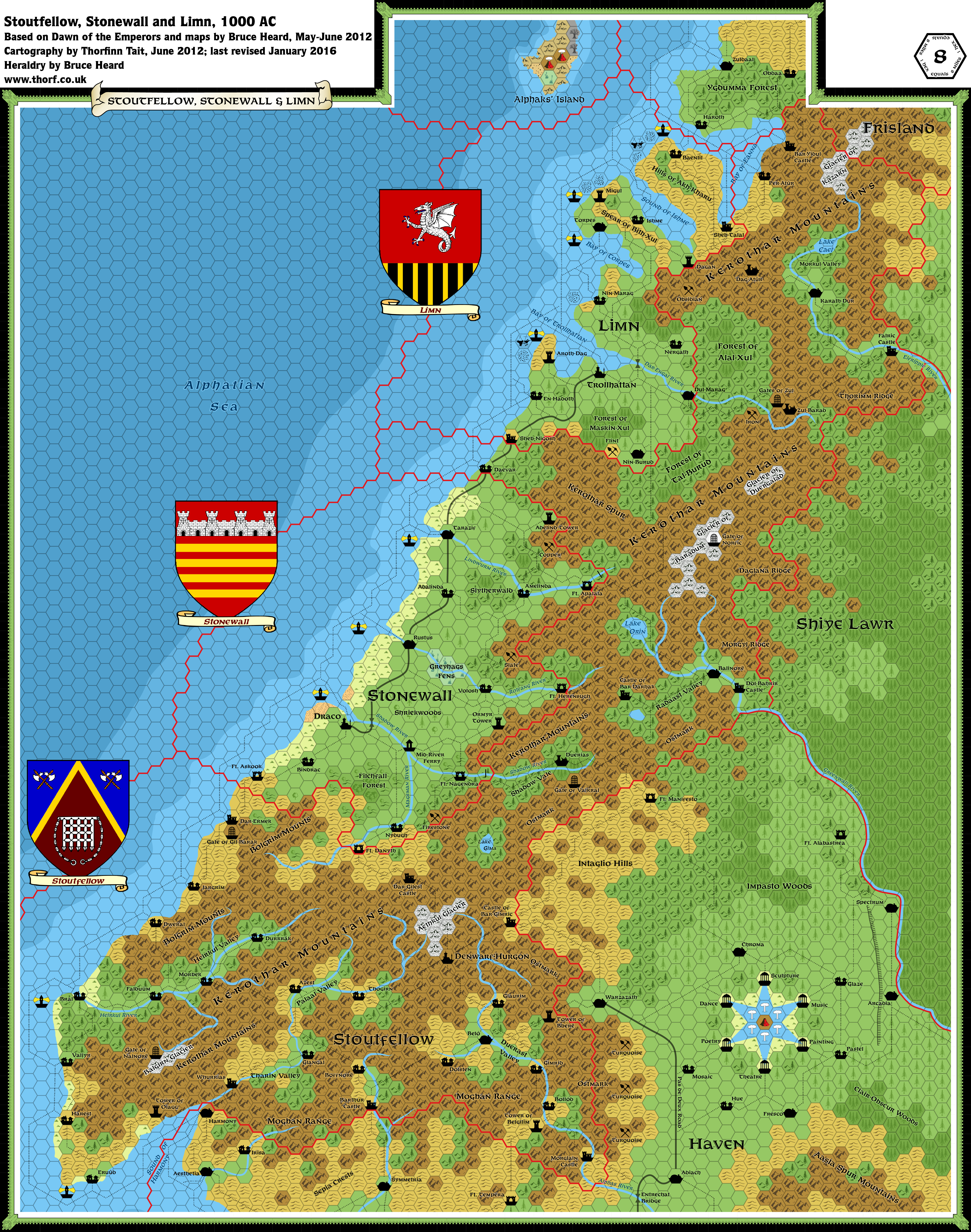 - Limn, 8 miles per hex map by Bruce Heard