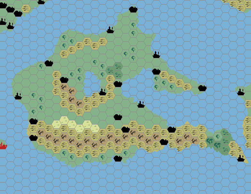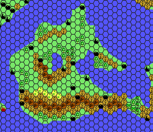 With his final Heldann map complete, Thibault turned his attention to Bellissaria. This may have been for one of the Mystaran Almanacs. Before starting on a converted 24 mile per hex map, he first went for a 72 mile per hex version. He started this by taking a crop from Mystara, 72 miles per hex 2000, then converting that into Hexmapper format. This is the resulting map (with the crop included second below for the sake of completeness). It seems to have been more of a stepping stone rather than a finished map of its own; Thibault didn’t recreate most of his maps of this scale in Hexmapper, so this one is somewhat of an exception.