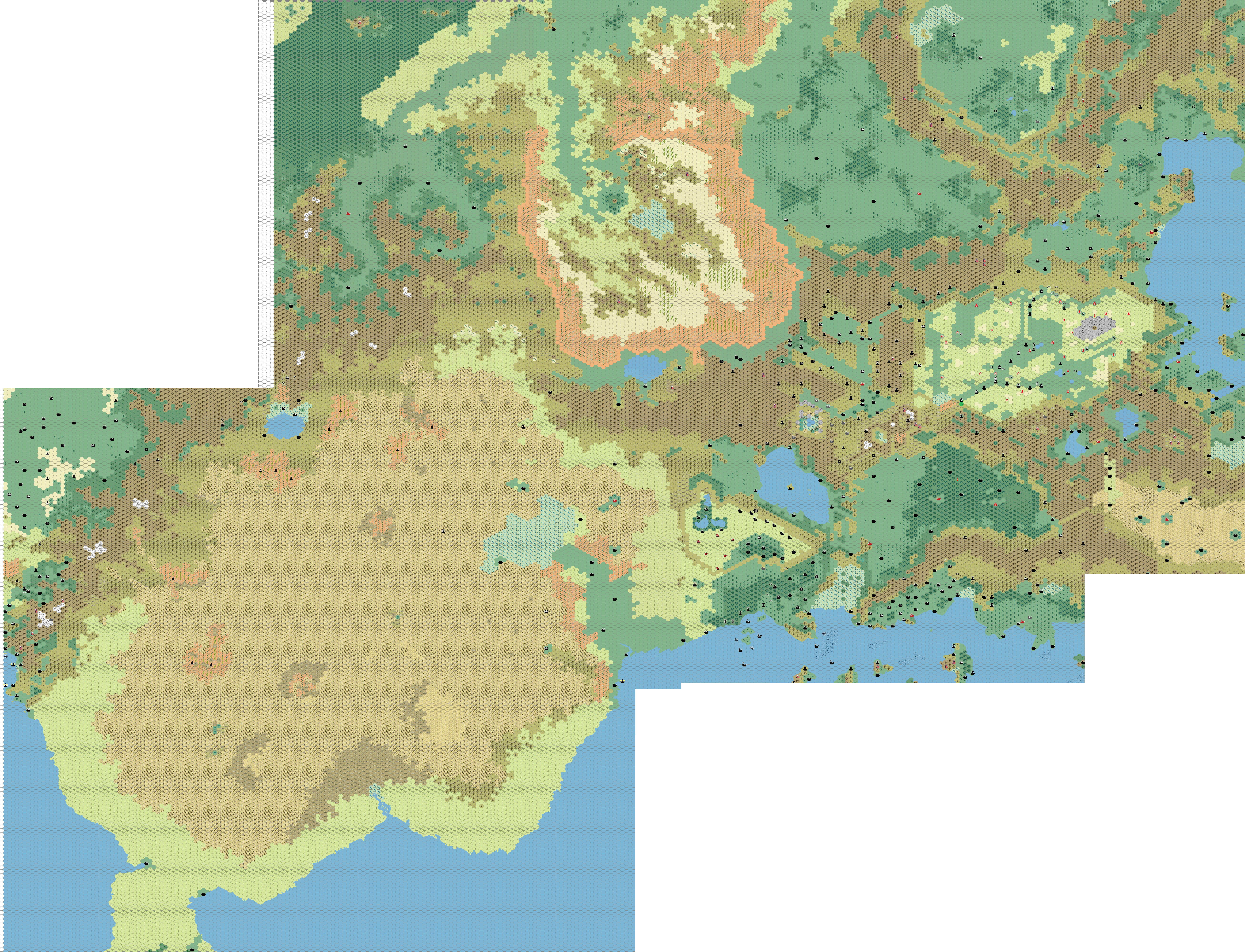 Thibault’s Known World and the Great Waste, 8 miles per hex