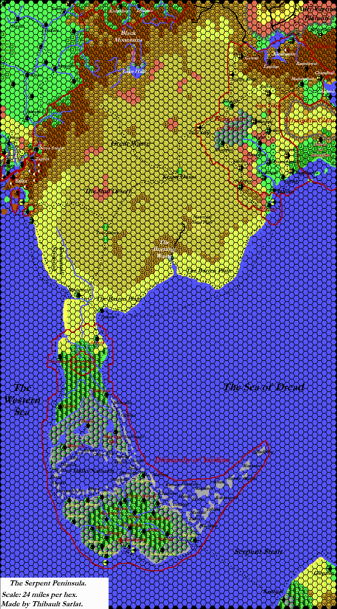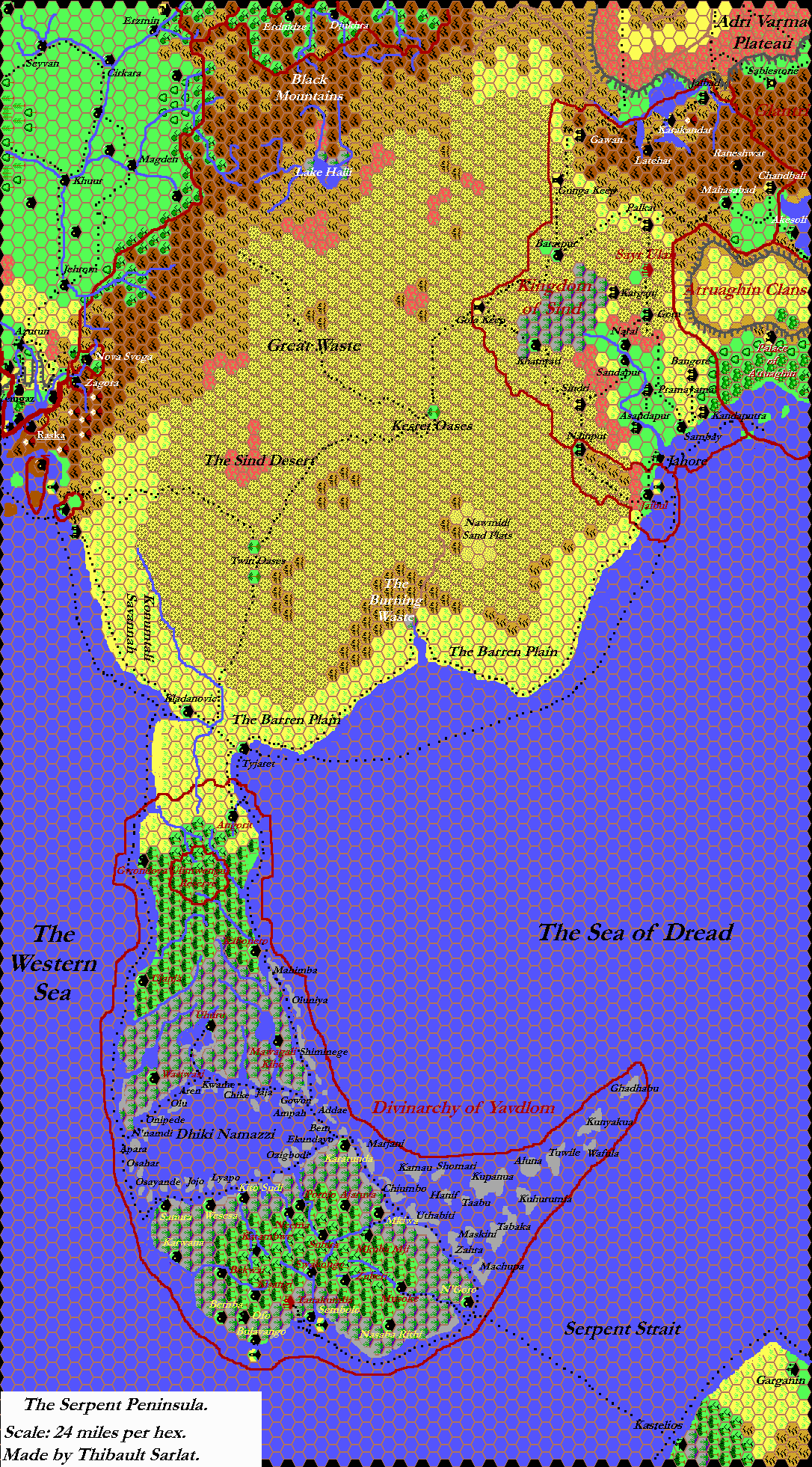 Thibault’s Serpent Peninsula and Great Waste, 24 miles per hex