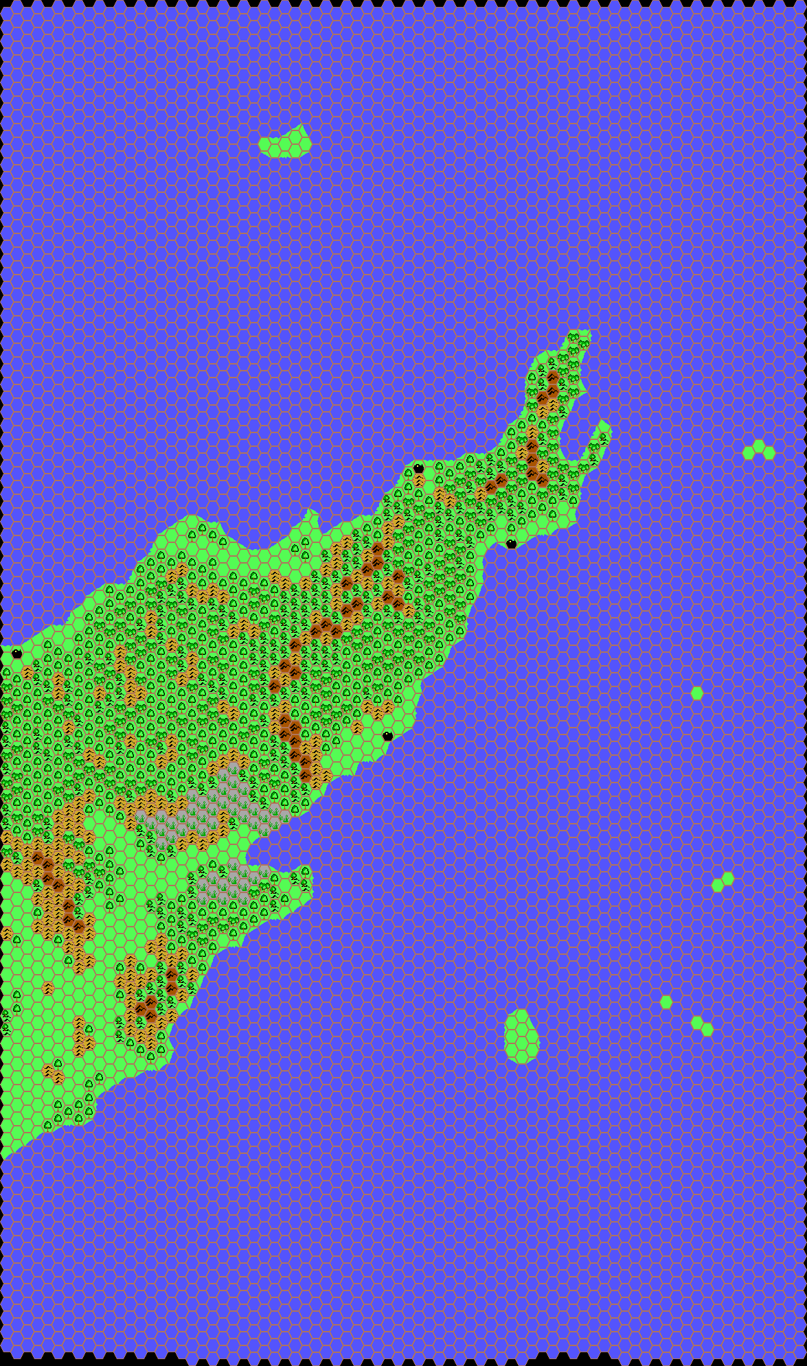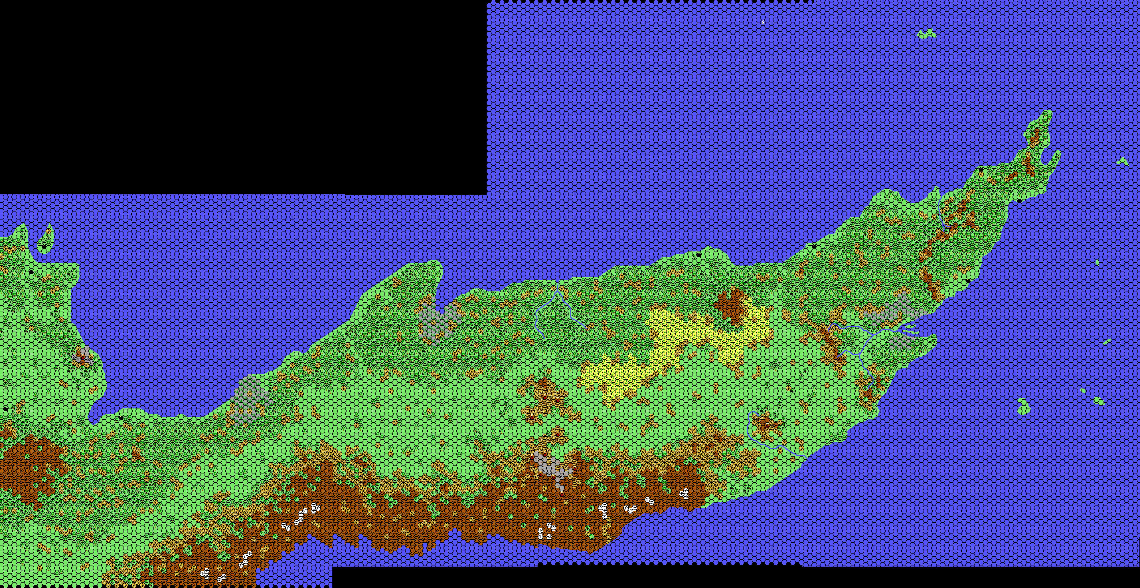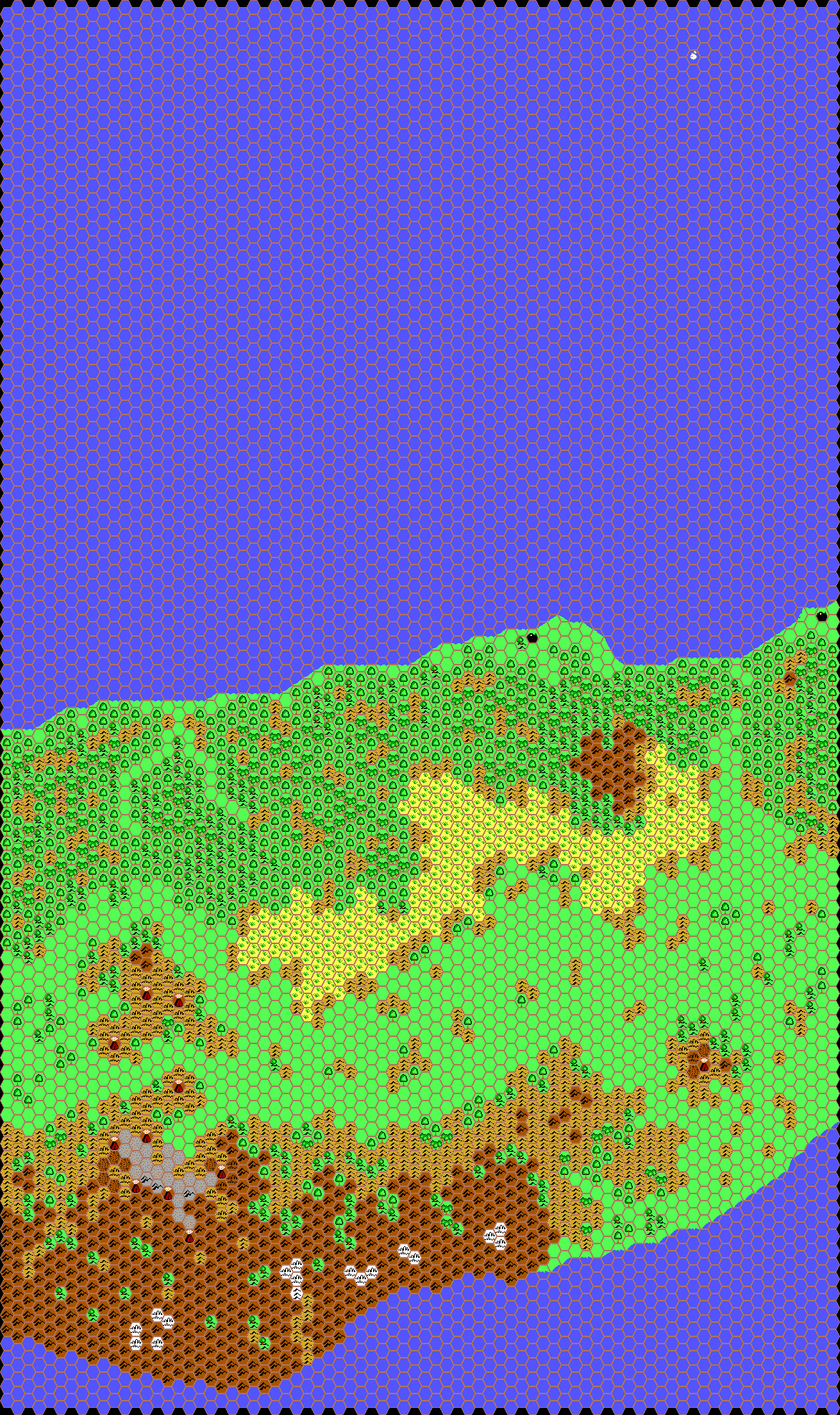 I think that section is supposed to go between the first two parts, though I’m not sure. I did consider joining them up for this post, but since Thibault already did that for his final Davania, 24 miles per hex map — which he finished just two months after these pieces — there didn’t seem a great deal of point. That one is coming up very soon now!