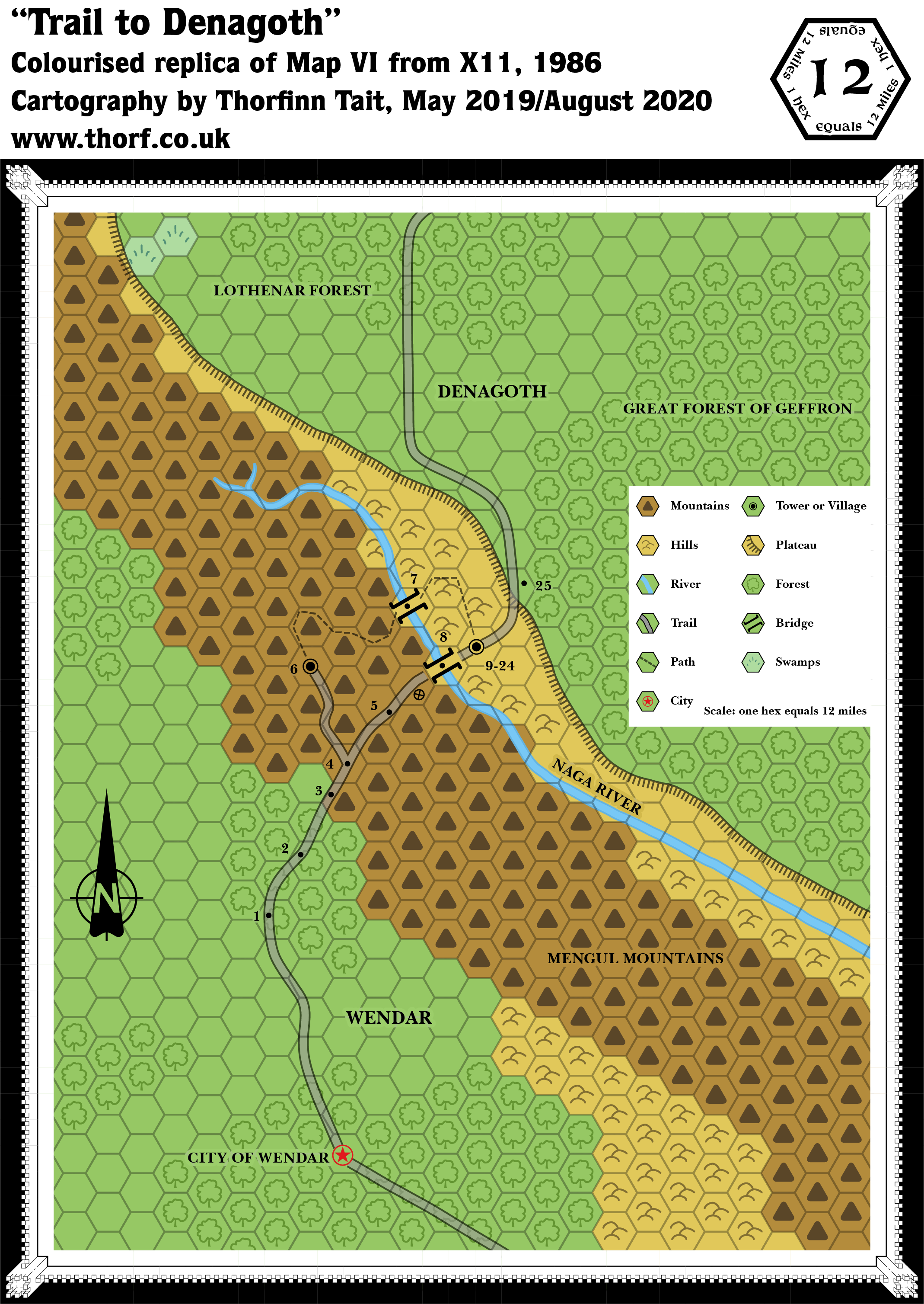 - “Map VI Trail to Denagoth”, page 31 (Cartography by Dennis Kauth)